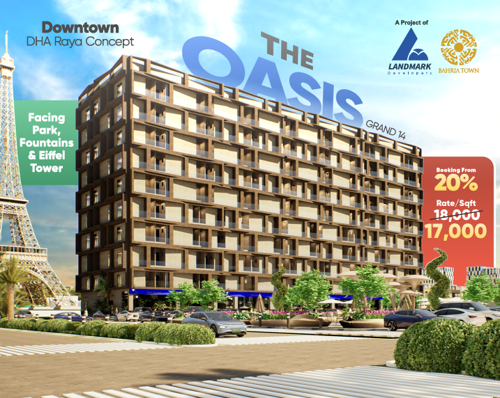 The Oasis Grand 14 brings a new standard of luxury and convenience to Bahria Town Lahore with its Service Apartments, designed for modern living in a high-value urban setting. Facing the Eiffel Tower, Park, and Fountains, these apartments combine aesthetic appeal with practical design, offering residents a blend of serenity, accessibility, and value.