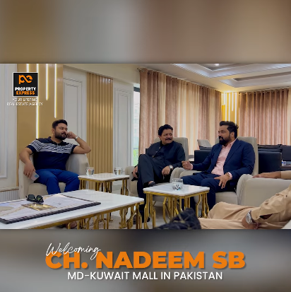 Property Express is proud to share the recent visit of Mr. Bilal Shamim, CEO of Property Express, to the office of Kuwait Mall, where he warmly welcomed Chaudhry Nadeem Sb, Managing Director of Kuwait Mall, on his arrival in Pakistan. This important meeting took place in Bahria Town Lahore and marks the beginning of a shared journey toward innovation and excellence in real estate development.